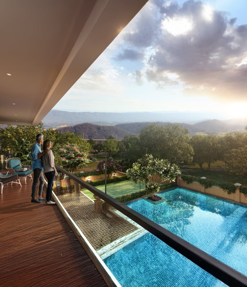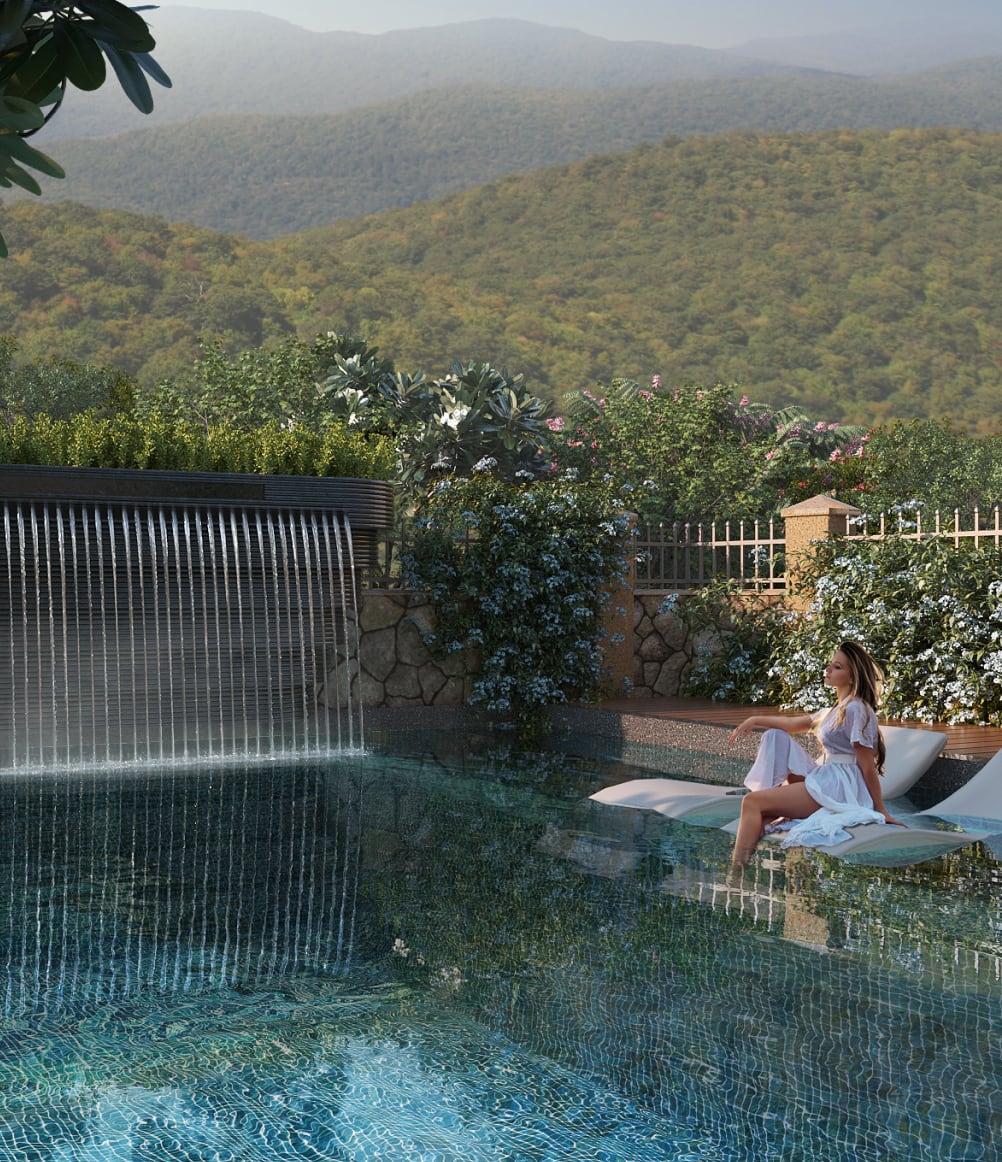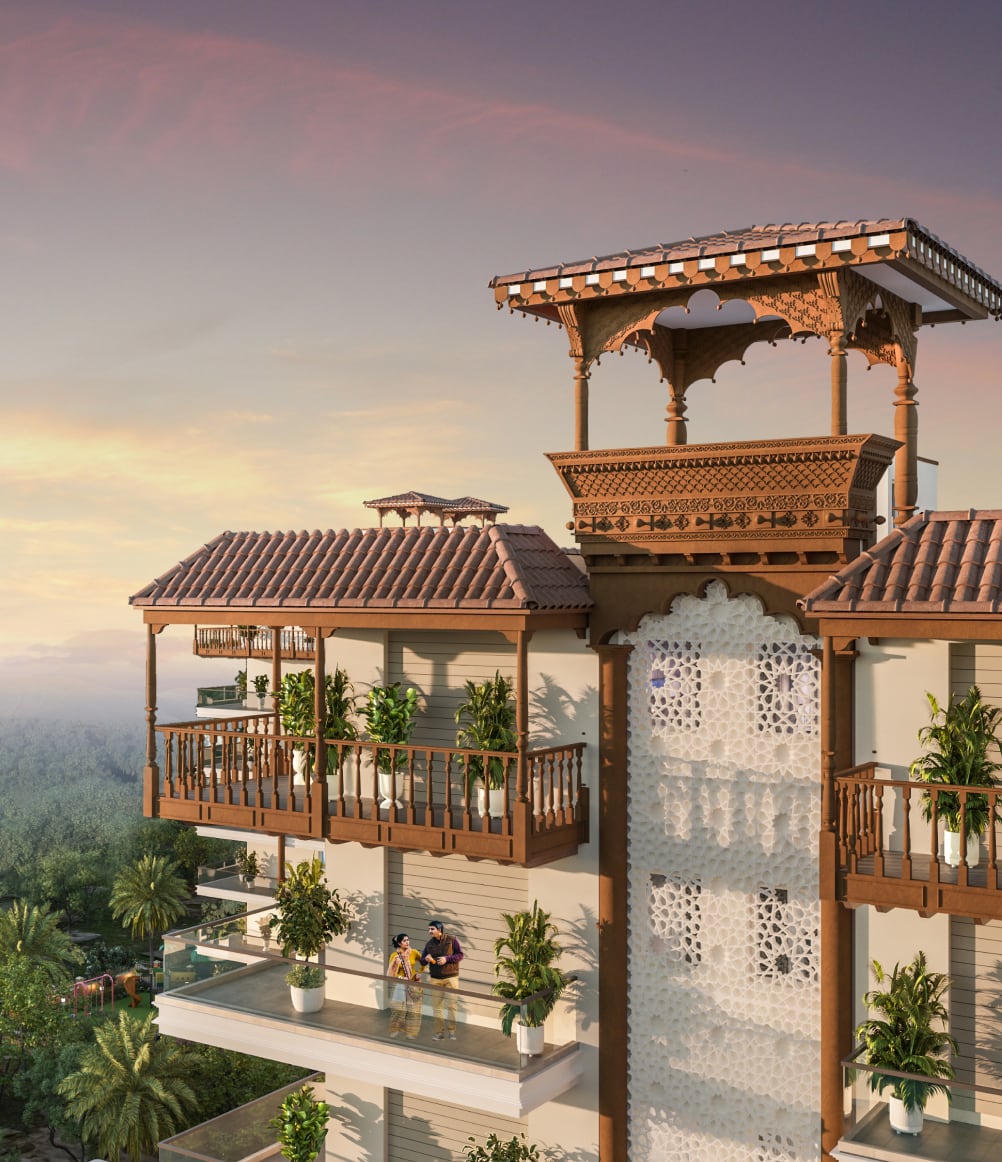 Part of ETH Infra’s One Series, Rishikesh One reflects minimal form with maximum serenity. Its signature U-shaped balconies, sunrise decks, chakra-inspired zoning, and curated wellness spaces come together to create a vertical ashram for the soul.